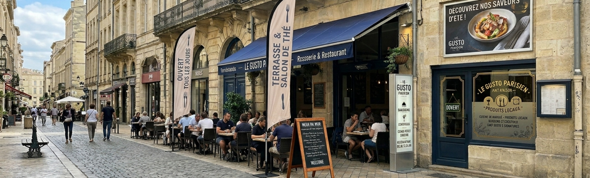 Dès les premiers rayons de soleil, les rues se remplissent et la concurrence redevient forte entre restaurants et cafés. Pour se démarquer, votre signalétique extérieure doit être visible, lisible et impactante en quelques secondes.