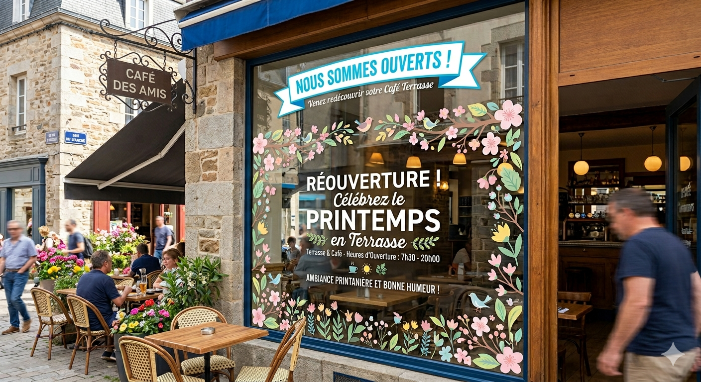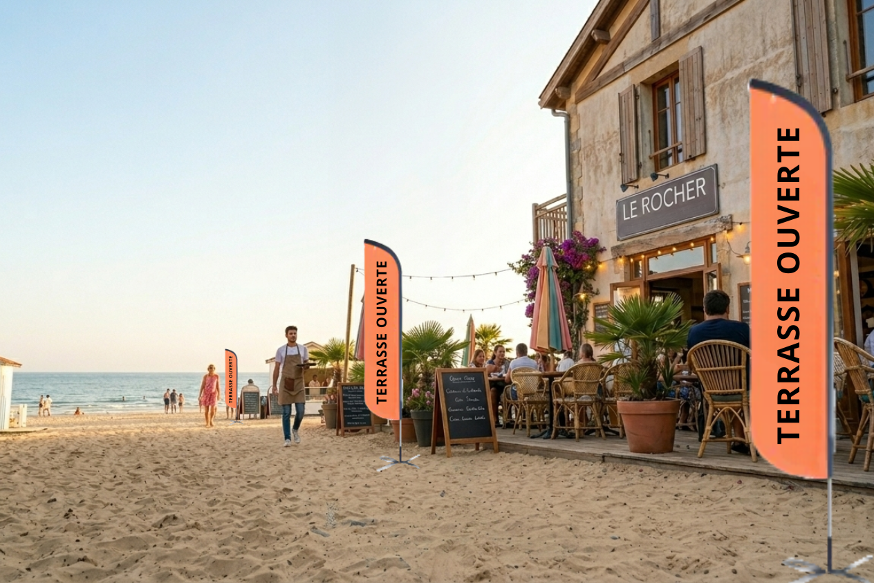 Avec le retour des beaux jours, la réouverture des terrasses marque un moment stratégique pour les professionnels de la restauration, des cafés et des établissements CHR. Après plusieurs mois calmes, l’objectif est clair : remplir sa terrasse, capter les passants et relancer le chiffre d’affaires grâce à une signalétique extérieure et à l’impression grand format.