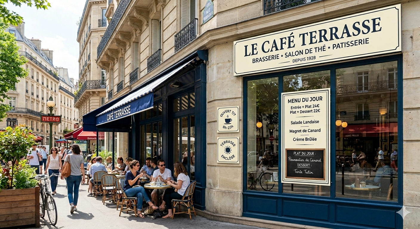 Avant même de s’installer en terrasse, le client juge votre établissement en quelques secondes via votre vitrine.