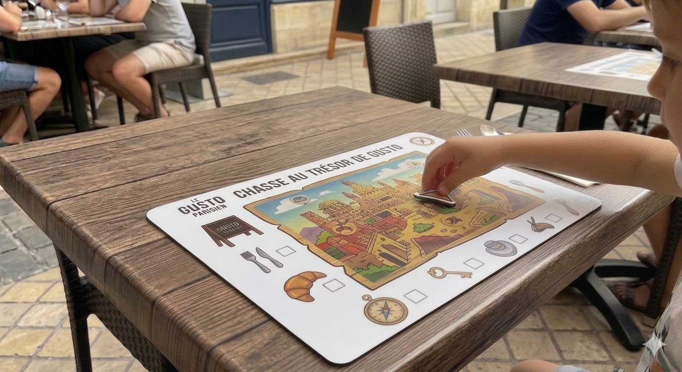 Les sets de table personnalisés, notamment en version magnétique sur vos tables en fer, permettent de prolonger l’expérience client bien au-delà de la simple prise de commande.