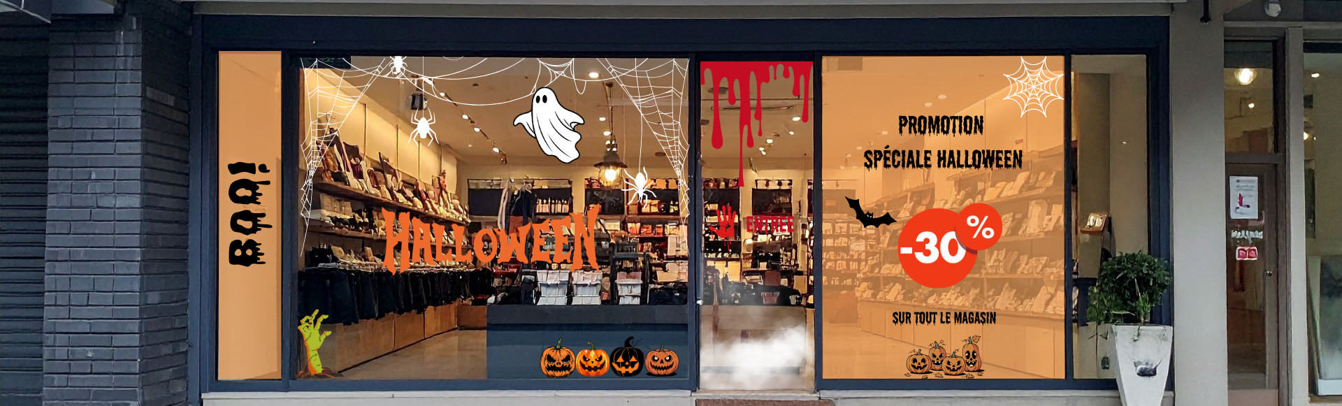 Halloween est l’un des moments les plus efficaces pour dynamiser votre vitrine et attirer du trafic en magasin. Grâce aux stickers en vinyle adhésif Halloween, vous pouvez transformer rapidement votre espace, sans travaux, tout en maîtrisant votre budget. Votre vitrine est le premier levier visuel pour capter l’attention. En période d’Halloween, elle devient un point de contact stratégique pour marquer les esprits.
